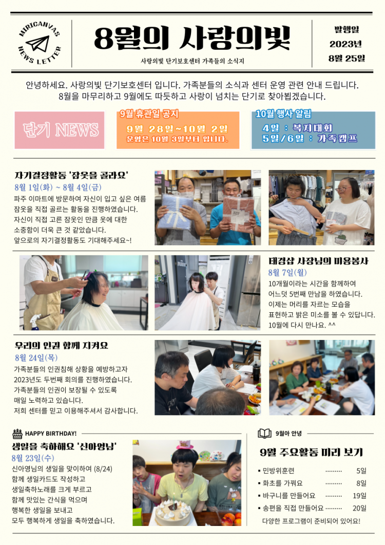 사랑의빛 [사랑의빛] 2023년 8월 소식지
