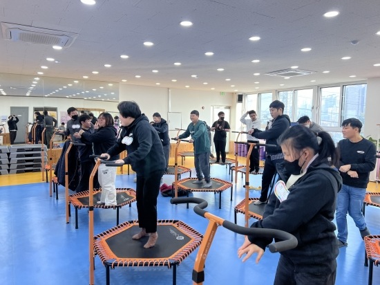 점프를 지속적으로 해야 하므로 몸의 균형이 많이 향상될 뿐만 아니라 스트레스 해소, 신진대사 활성화, 전신 근육 강화, 유연성 강화 등
