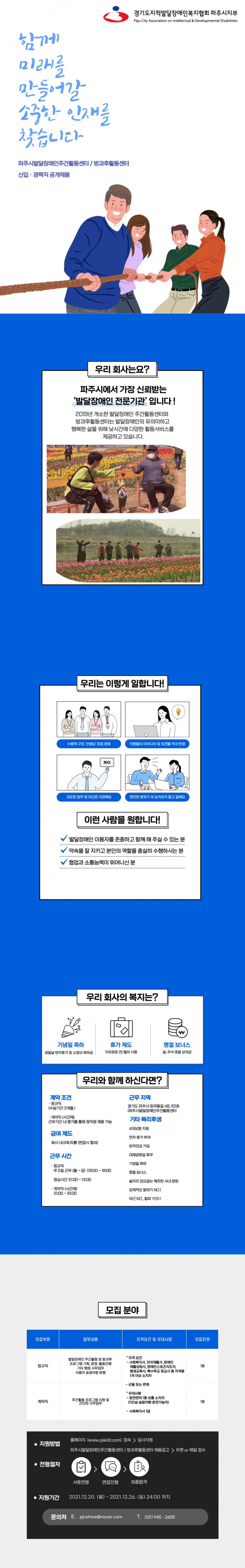 [마감]파주시발달장애인주간활동센터 직원채용(정규직/ 계약직)