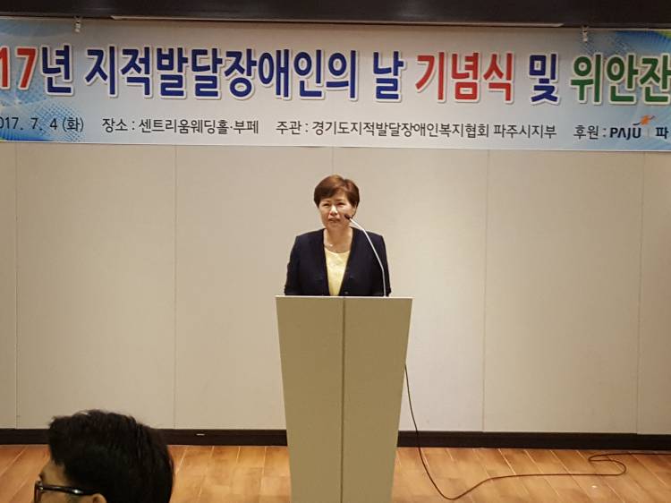 우리지부에서는 지난 7월 4일 파주 센트리움 웨딩홀에서 "2017년 지적발달장애인의 날 기념식 및 위안잔치"를 개최하였습니다.